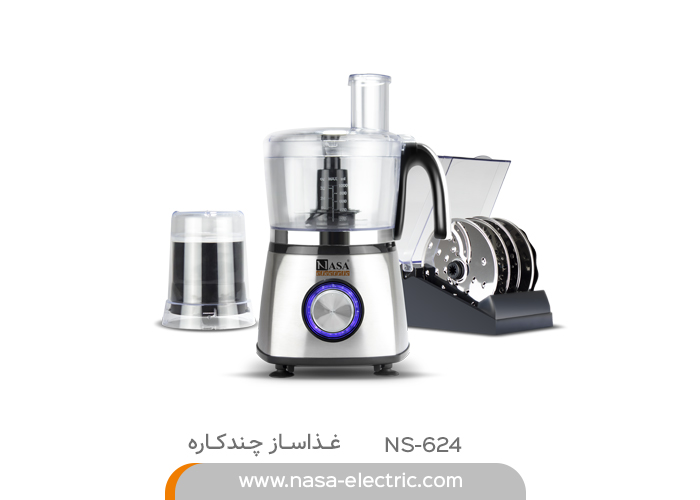 غذاساز ناسا الکتریک NS-624 یکی از غذاسازهای حرفهای و چند کاره است که کار یک دستیار حرفهای آشپزی را انجام میدهد. این دستگاه یک مجموعه کاربردی برای ارائه عملکردهای مختلف است و در واقع از چند عملکرد متفاوت پشتیبانی میکند. در کنار طراحی و ظاهری زیبا این غذاساز از موتوری قدرتمند و ویژگیهای کاربردی بهره میبرد. بدنه اصلی این غذاساز از جنس استیل زنگ نزن و پلاستیک ABS میباشد، به گونهای که هم جذابیت ظاهری محصول حفظ شده و هم اینکه وزن آن سنگین نشده است. یک پیچ انتخابگر بر روی بدنه اصلی دستگاه قرار گرفته شده، که انتخابگر سرعت دستگاه است و با چرخش آن میتوان سرعت را در حالتهای مختلف از سرعت 1 تا 4 تنظیم نمود. همچنین حالت پالس یا همان ضربهای برای این غذاساز در نظر گرفته شده، که برای یک لحظه از حداکثر سرعت و قدرت موتور بهره میبرد.